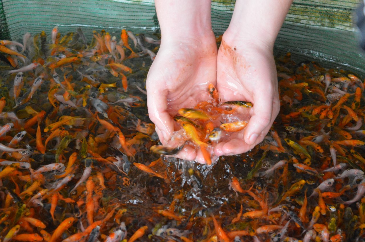 l'insémination artificielle des carpes. Ils recueillent les œufs en pesant sur